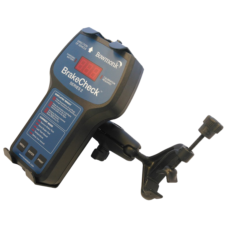 Le support et la pince du guidon permettent de monter solidement le BrakeCheck sur le guidon ou le barre de tirage avant d'une moto ou d'un quad/ATV afin d'effectuer des tests de freinage. Le BrakeCheck combiné avec support de guidon et pince (codes de pièce BOW801 et BOW811) est entièrement approuvé par DVSA pour le test des freins sur tous les types de véhicules, y compris pour les véhicules avec ABS ou systèmes de freinage liés
